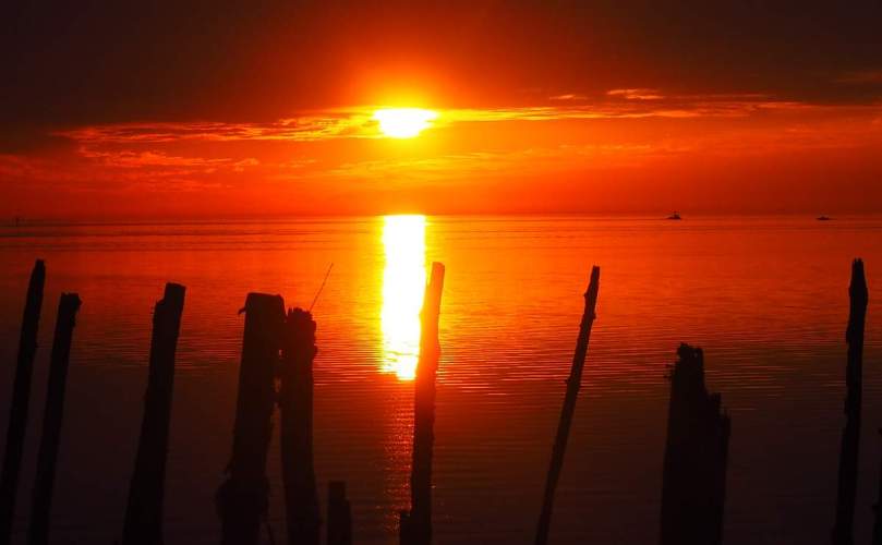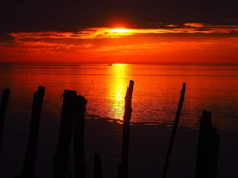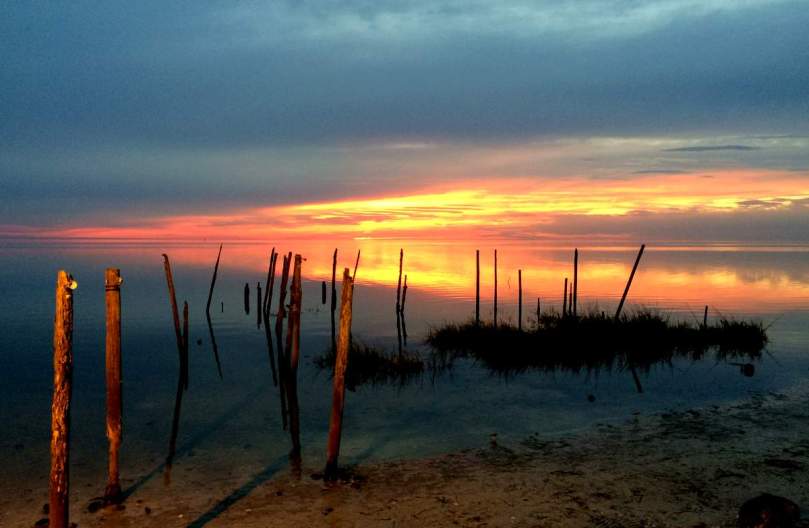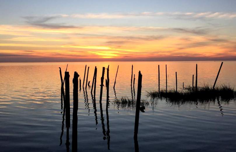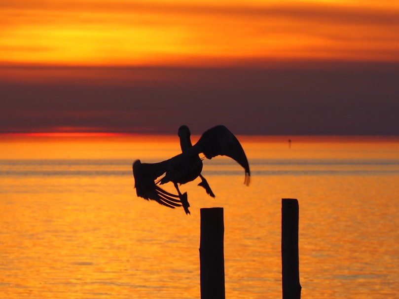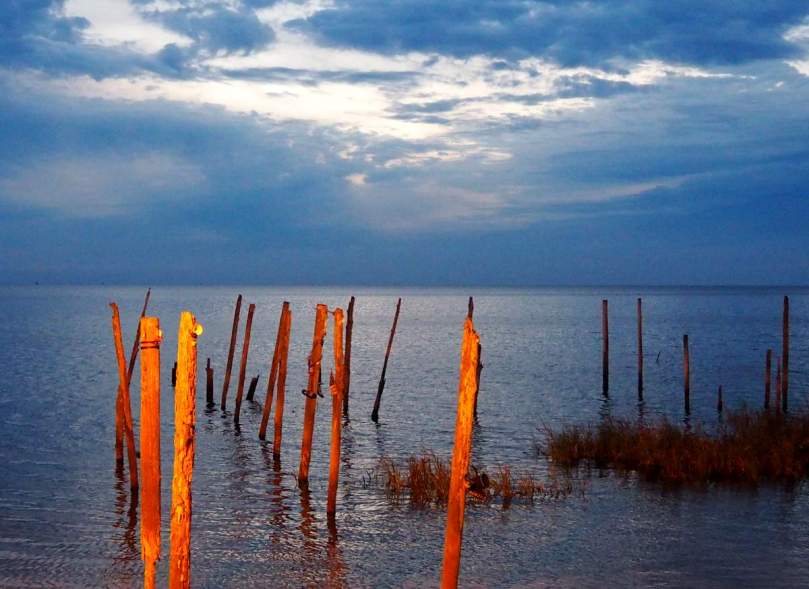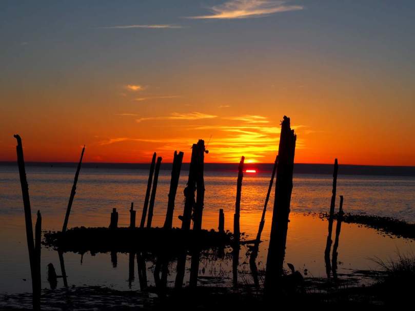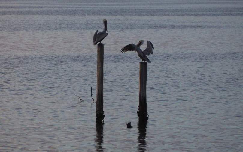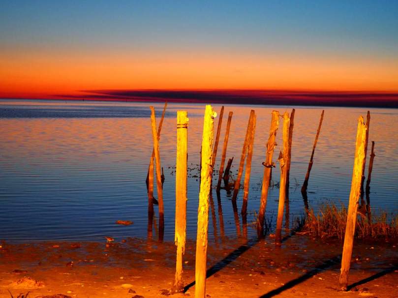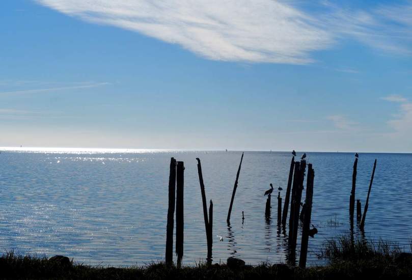 Denn zu mehr als „Kunst am Pfahl“, Dauersitzplatz für Pelikane und Möven bei Flut und pitureskem Blickfang für Fotografen eignen sich die ehemaligen Bootsanleger, die krumm und schief die Tide anzeigend, vor sich hin gammeln, nicht mehr.