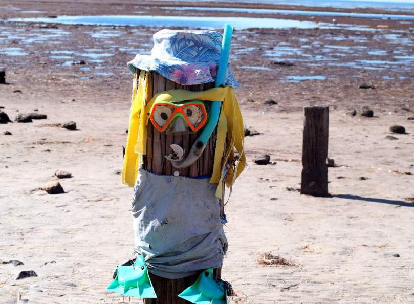 Die Beach-Art anderer Menschen an den Pfählen empfinden wir als liebenswert und kreativ.