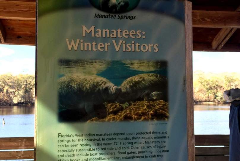 Wir erreichen nach dieser „Zeitreise“ unser nächstes Ziel, um in Ruhe die kommende Nacht zu verbringen. Konsequenterweise nehmen wir einen Park in Augenschein, der uns mit seinen Manatees, also auf Deutsch „Seekühen“ genannten Tieren, eine nächste Besonderheit Floridas präsentiert. Hoffentlich sind sie zwecks Winterquartiers in den hier ausströmenden warmen Wasserquellen des Suwanee Rivers schon eingetroffen…