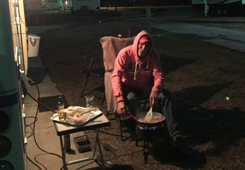 Insbesondere dann, wenn der Campground wie heute schon nicht besonders schön ist, bekommt die Frage: „Was essen wir heute Abend?“ eine besondere Bedeutung.