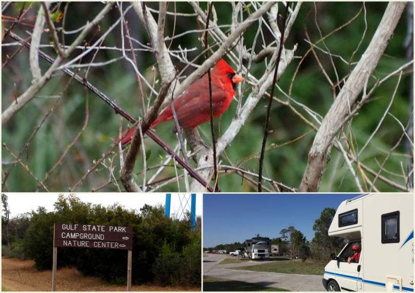 Wir schaffen es (fast) einfach nicht, Florida hinter uns zu lassen und nisten uns deshalb gern noch einmal, auch in Erinnerung an Weihnachten 2015, auf Henderson Beach State Park bei Destin FL, diesmal auf #15, für einen Tag und eine Nacht ein. Auch wenn der Hwy 98 um die Ecke dieses Mal mehr Krach zu machen scheint als damals, fühlen wir uns in dieser ausgesprochen gepflegten Umgebung sehr wohl. Ein kleines Campfire in unserer „Höhle“ bringt uns auf Gedanken an Zuhause, an unseren Garten, den Blick aus unserer Terassentür…