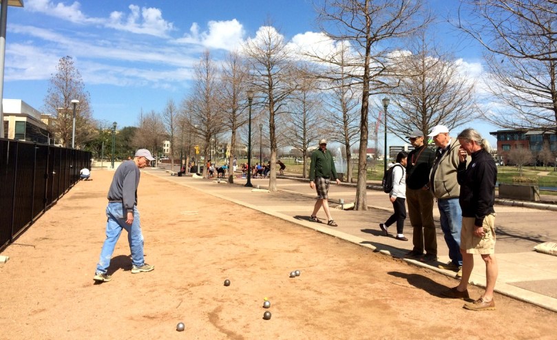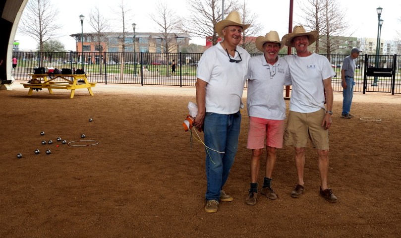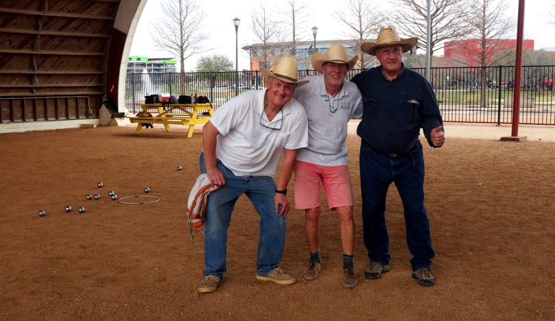 Am nächsten Morgen fahren wir leicht verschwitzt aber gut ausgeschlafen eine halbe Stunde links, links, rechts, links, rechts und endlos scheinend und doch nur für 18 Kilometer über die typischen quadratisch angelegten vierspurigen Hwys ohne wirklichen Großstadtverkehr in die Stadt, weil wir von Jim Schwobel, dem Vize-Präsidenten des „Heart of Texas Petanque Club“ mit den besten Informationen über die Strecke und bequeme Parkmöglichkeiten versorgt worden sind, die man sich vorstellen kann.