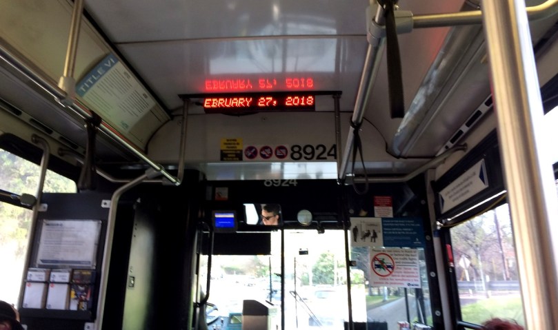 Pünktlich! Es versteht sich von selbst, dass der Fahrer eine eigene Nummer hat, mittels der wir uns über ihn lobend oder beschwerend äußern können. Wollen wir aber nicht, denn selbstverständlich macht er uns darauf aufmerksam, wo wir zwecks Umsteigens raus müssen!