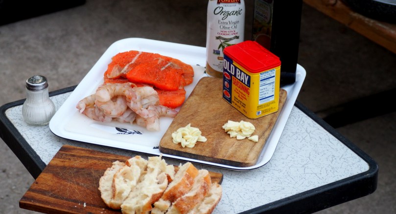 Das Getränk für ihn muss schon sehr früh hinein (in ihn), denn dieses kühle Bier mit Grapefruit-Geschmack ist der Hammer… Das Bier, die Garnelen, der Lachs, die Ziebeln, der Knobi und das Baguette: alles braucht seine Zeit, um zu wirken: gekocht, gebraten oder getrunken.