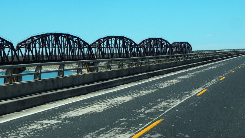 Der Pecos River… kneif mich mal, wir sind inzwischen über ihn hinweg, ist einsame, ich meine mich an ihn aus irgendwelchen Comicheften meiner Kindheit noch als unendlich weit weg, Erinnerung…