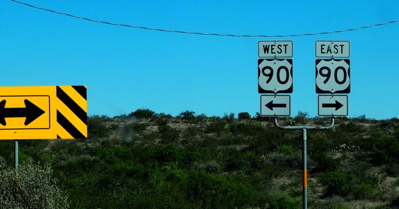 Guck mal, immer noch der Hwy 90. Wir biegen nach links, also nach Westen auf ihn ab und…