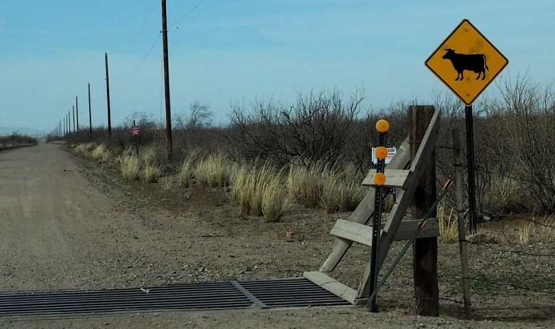 Nach einer Stunde weiterer Fahrt über parallel zum Freeway I 10 verlaufenden Hwys kommen wir zu der uns schon bekannten Stelle, an der wir den Rindern der Vortritt zu lassen haben.