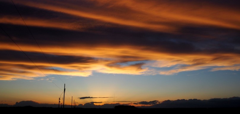 Der Wind hat auch was Gutes: Er reißt den hohen Himmel auf und bietet uns ein Sonnenuntergangsspektakel der besonderen Art.