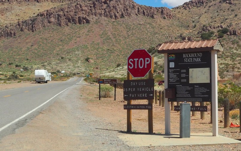 Wollen uns gerade noch einmal, den Platz haben wir schon abgesichert, unsere Campingstühle sind das auch hier gültige „Mallorca-typische“ Zeichen dafür, dass der Platz „uns gehört“, im Visitor Center des State Parks die herrlichen Steinspezialitäten erklären lassen, als das Golfcar des oben genannten Volunteerpaares vor der Tür hält und sie uns freudestrahlend erklären, dass sie unsere Stühle auf die Site #23 gebracht haben. Die letzten Besucher seien gerade abgefahren und sie hätten sie sofort für uns „markiert“.
