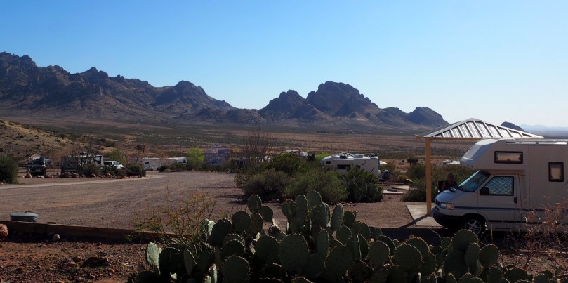 So ist es auch jetzt, anstatt, wie eigentlich gedacht, zu Cattleman’s Steakhouse in Fabens bei El Paso zum Steakessen unterwegs zu sein, haben wir uns entschieden, die nächsten Tage einsam, wie während unserer ersten Reise (wir können es nicht lassen), den RV Park El Rancho Lobo in Deming NM zu besuchen…