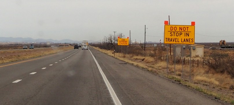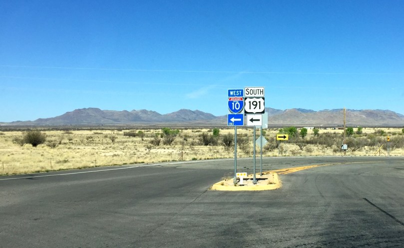 Wenn es nur eine Straße gibt, wie in diesem Fall, wird die I 10 für ein kurzes Stück auch zu dem von Norden kommenden Hwy 191, der dann ungefähr 20 km weiter westlich, Richtung Süden abbiegt und so seine Selbstständigkeit wieder aufnimmt.
