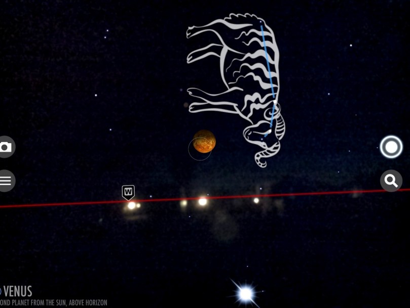 Es wird sehr schnell dunkel und mittels dieser Recherche in unserer Sternen-App unter Nutzung eines Screenshots sind wir sicher, dass der hellste Stern um diese frühe Nachtzeit der Planet Venus ist. Wer sonst!
