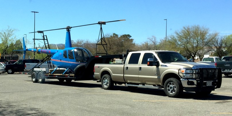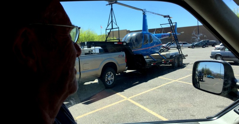 Sind zwar zu diesem Fotozeitpunkt nicht mehr in Texas, aber Arizona ist mindestens genau so weitläufig und ein Hubschrauber überwindet auch hier so manche Entfernung schneller, als ein Auto auf staubiger Ranch Road fahren kann.