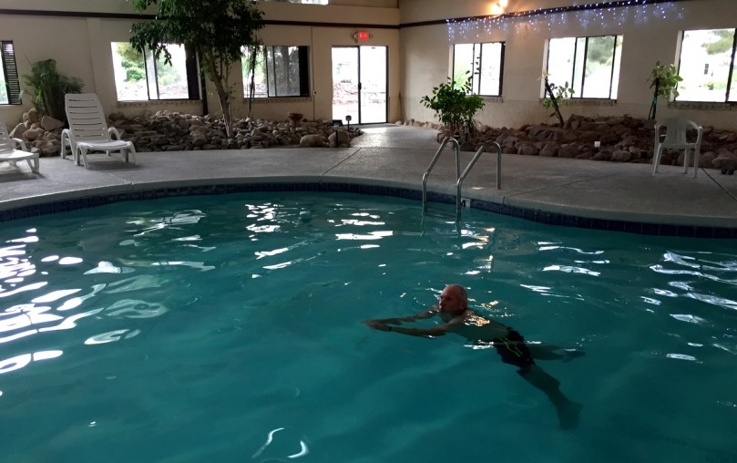 Bei diesen Temperaturen fast unabdingbar: Der Riesenpool stellt für uns, wir sind immer allein in ihm, eine herrliche Abkühlung dar.
