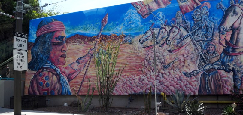 Wir können unter diesen „Stop and go“-Bedingungen nicht anhalten, so dass dieses beeindruckende Wandgemälde, wovon es in Downtown sehr viele gibt, erst im Nachhinein seine Existenzberechtigung verraten kann: