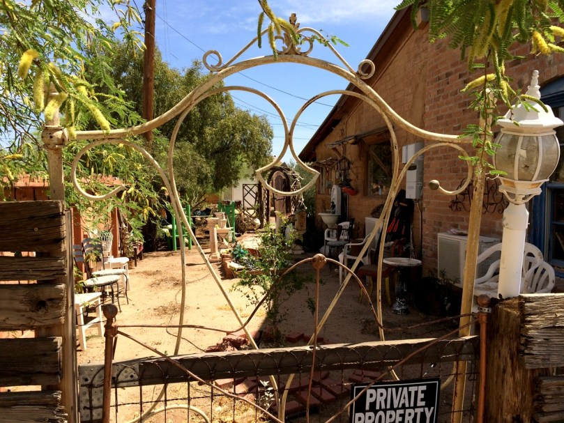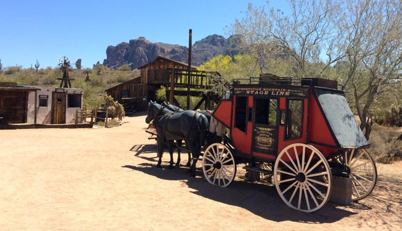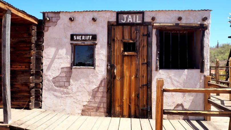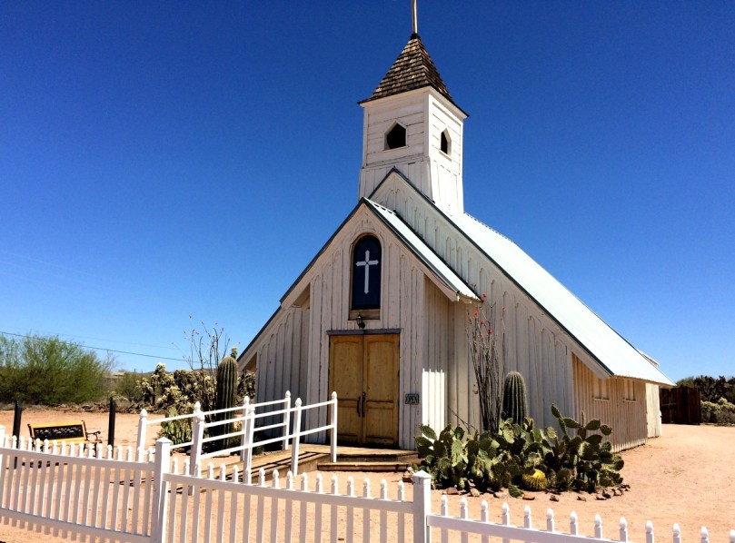 Wir verlassen Lost Dutchman State Park, besuchen noch kurz eine der vielen am Straßenrand liegenden „malerischen“ Sehenswürdigkeiten: Die Gegend und mit ihr viele Menschen leben von den Touristen, die besonders im Frühjahr, wenn es noch nicht ganz so heiß ist, die Filmkulisse mit Kirche, Saloon, Kutsche, lebendem Schmied, Gefängnis vor überfallträchtigem Bergkulissenhintergrund als ihre „Indianer- und Cowboy“-Geschichte des „wilden Westens“ wiedererkennen…