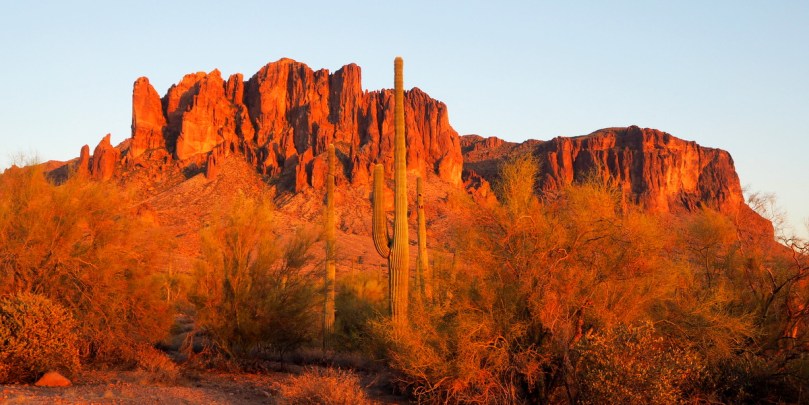 Hier, am Ende der Wüste, kurz vor den „Supersticion(s) Mountains“, früher auf spanisch: Sierra de la Espuma, wohnt wohl der „verlorene Holländer“, benannt nach der bekannten Goldmine, die bis heute nicht wieder gefunden wurde: „The Lost Dutchman“ jedenfalls heißt der State Park (unsere Suche war auch erfolglos)