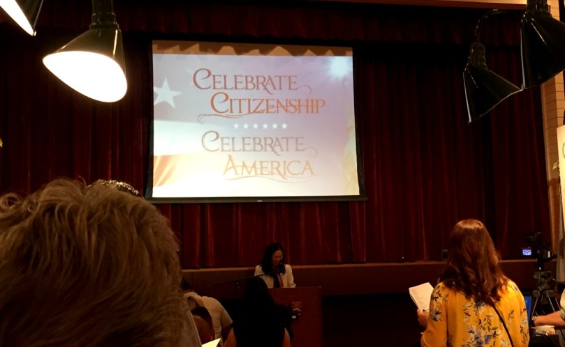 Im Hauptsaal des Centers gewinnt die Gegenwart Oberhand: wir platzen in eine aktuelle, viel beklatschte Einbürgerungsfeier, die nach markigen Reden mit einem Eid, auf die Vereinigten Staaten von Amerika geschworen, endet (Schlussapplaus).
