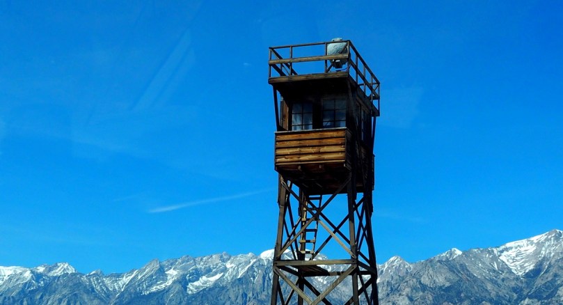 Im Nirgendwo des Inyo County deutet ein unbesetzt herumstehender Wachturm auf eine mich an KZ‘s in Deutschland erinnernde Geschichte hin. Wenn da etwas dran sein sollte, wen könnten sie denn hier interniert haben?