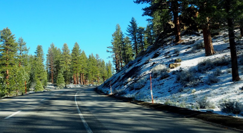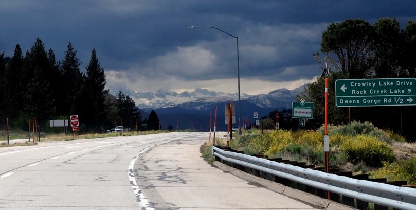Hinter Bishop biegt die 395 nach Westen hinein in die Sierra, so dass unser Auto über 20 Kilometer, im vierten Gang mit Warnblinkanlage, auf dem vierspurigen Hwy ganz schön gequält die Höhe erreicht.