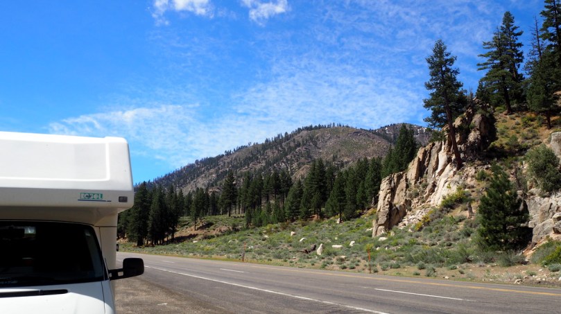 Was für eine Szene. Wir sind immer noch, unglaublich, in Kalifornien. Die nördliche Breite und die Höhe überm Meeresspiegel sind für diese Temperaturunterschiede maßgeblich und für uns ist es, ohne Klimaanlage im Aufbau nicht unangenehm.