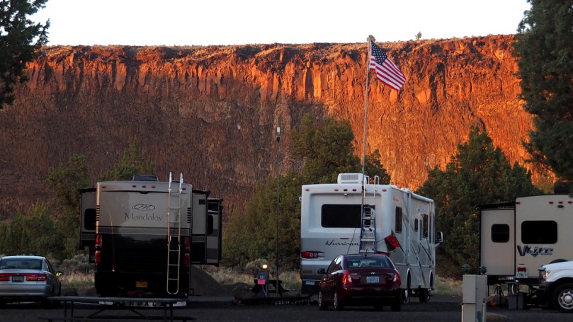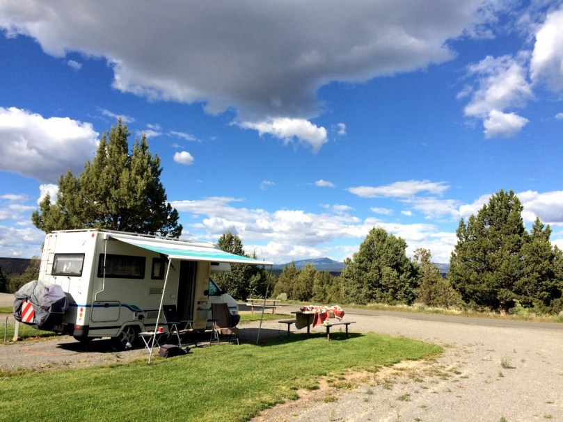 Tumalo SP ist einer unserer Glücksplätze, nicht nur, weil wir den letzten freien Platz mit Wasser und Elektrik gefunden haben, sondern weil es ein Refugium der Ruhe und Entspannung aus sich heraus ist. Deshalb offensichtlich auch sehr beliebt bei Urlaubern aus allen Ecken des Landes…