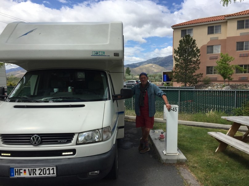 Gold Dust West Casino RV Park in Carson City. (Viele Casinos bieten recht preisgünstige Campings in der Nähe an, manche mit direktem kostenlosen Shuttle Service von Tür zu Tür)