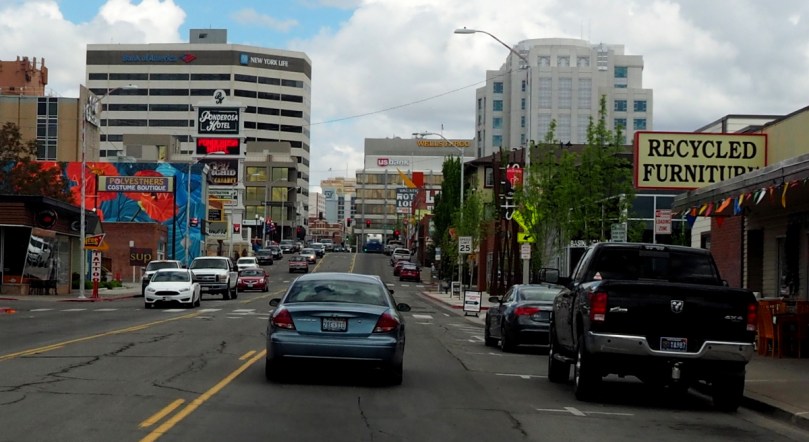Es vergeht gefühlsmäßig eine vor allem weidegeprägte halbe Stunde, dauert aber real erheblich länger, bis wir die südliche Stadtgrenze von Reno, Nevada, der kleinen Schwester von Las Vegas, Nevada erreicht haben.