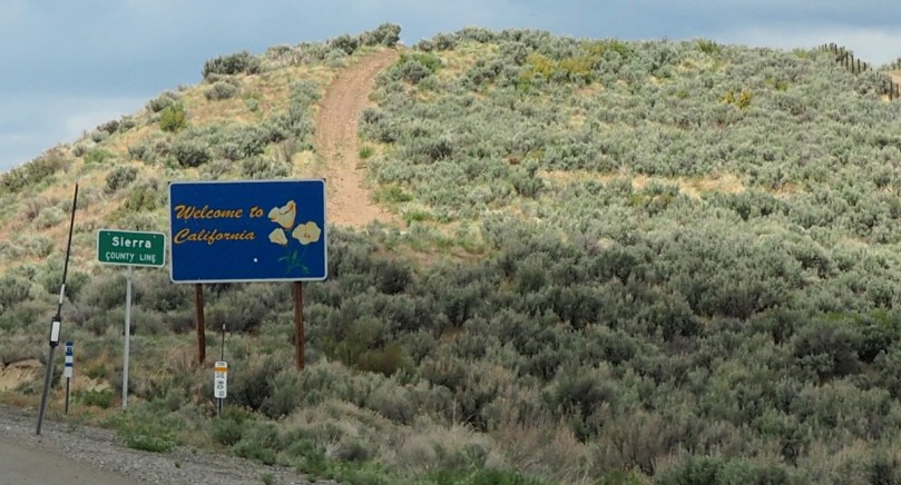 Das war’s dann auch schon mit Nevada, kurz noch das stolze „N“ am Berg vor der Grenze wahrgenommen und schon hat uns California wieder.