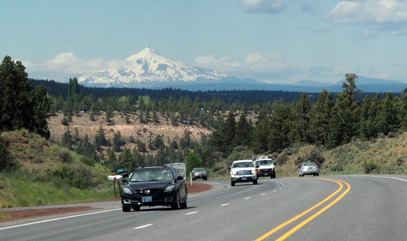 Die North and South Sisters einerseits und Mount Jefferson, Oregon andererseits, die hier so stolz ihre Spitzen aus der sie umgebenden Ebene recken, begleiten uns auf dem Hwy 20.