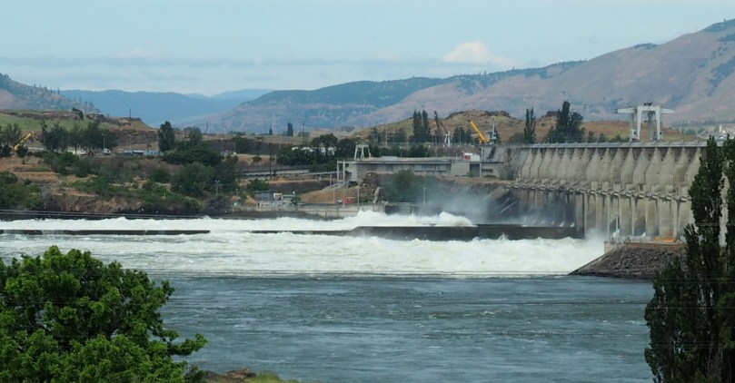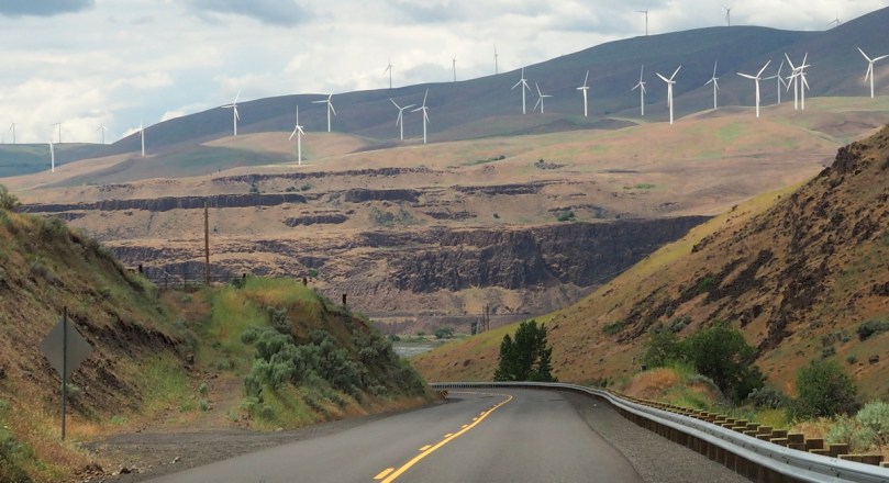 Am nördlichen Ufer in Washington zeugt ein großer Windpark erstens von zukunftsträchtiger Energiegewinnung und zweitens davon, dass hier häufig ein kräftiger Wind weht!