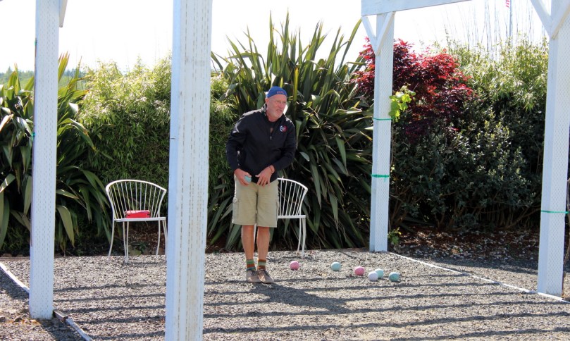 Nein, unser Besuch dieses außergewöhnlichen Gartens mit Bocce-Bahn ist zurückzuführen auf die im Internet von mir gefundene Notiz, dass man hier „Kugeln schmeißen“ kann…