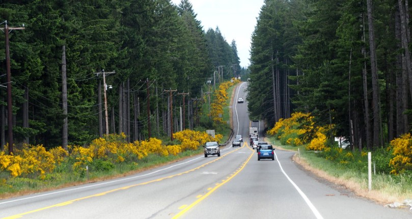 Bei Centralia WA finden wir nach den ersten alternativlosen 100 Meilen auf der Interstate 5 dann glücklicherweise die Harrison Ave. Sie geht hinter der Stadt in den Old Hwy 99 SW über und verläuft durch eine bezaubernde Landschaft parallel zum Freeway.