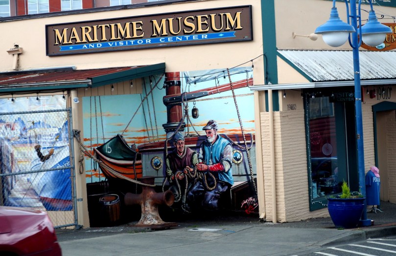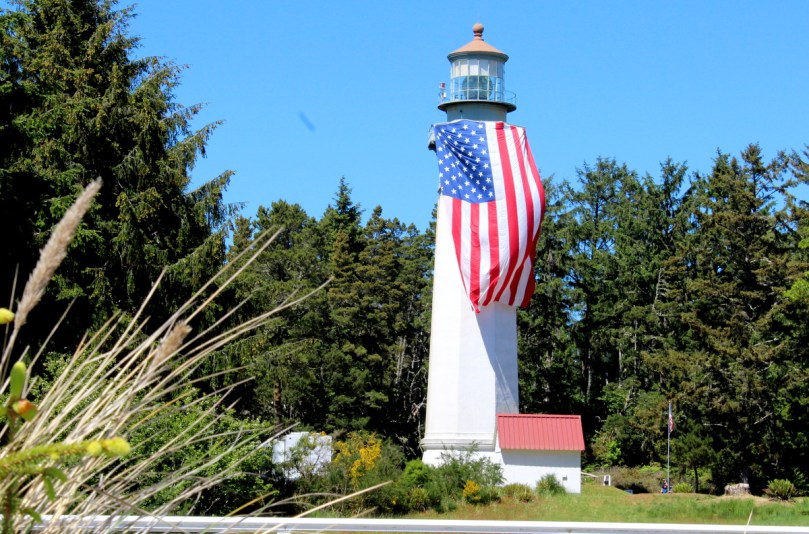 Um die Ecke weht am Leuchtturm von Westport das unübersehbare Symbol der USA „Stars and Stripes“, das in der Nationalhymne „Star-spangled Banner“ besungen wird. Wir verstehen diese Alltags-Euphorie über Flagge und Hymne, die uns immer wieder begegnet, nicht. Manchmal erscheint sie uns, wie hier, übermächtig, unantastbar, vielleicht der sichtbarste Ausdruck für diesen uns immer wieder begegnendem Zwang „to be Number One – America first“