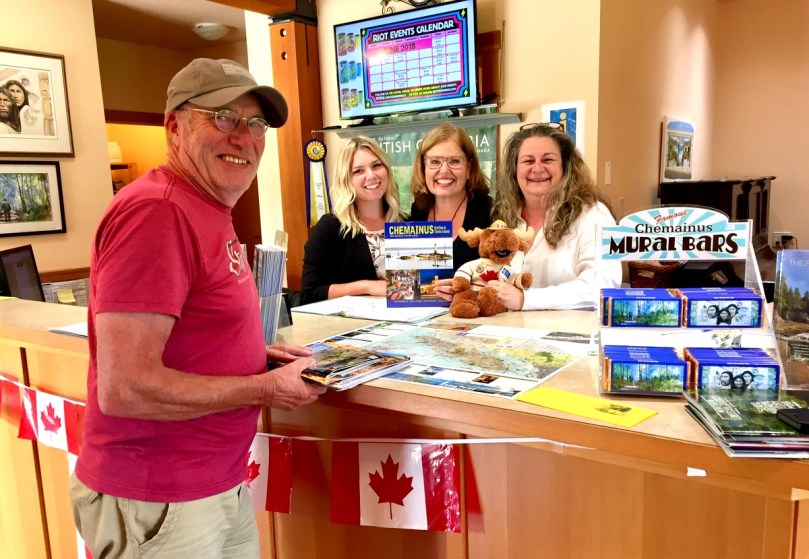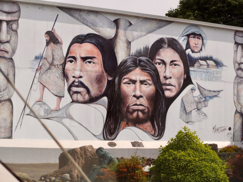 Und dieses Portrait im Visitorcenter von Chemainus ist auch nicht „ohne“, denn ihm geht eine informative Beratung der gesamten Belegschaft über die „flachste Möglichkeit, die Rocky Mountains Richtung Osten zu überqueren“, voraus. Dass daraus dann diese freudige Gemeinsamkeit entsteht, ist für uns eher ungewöhnlich…