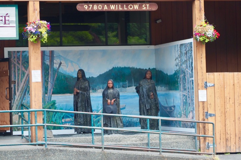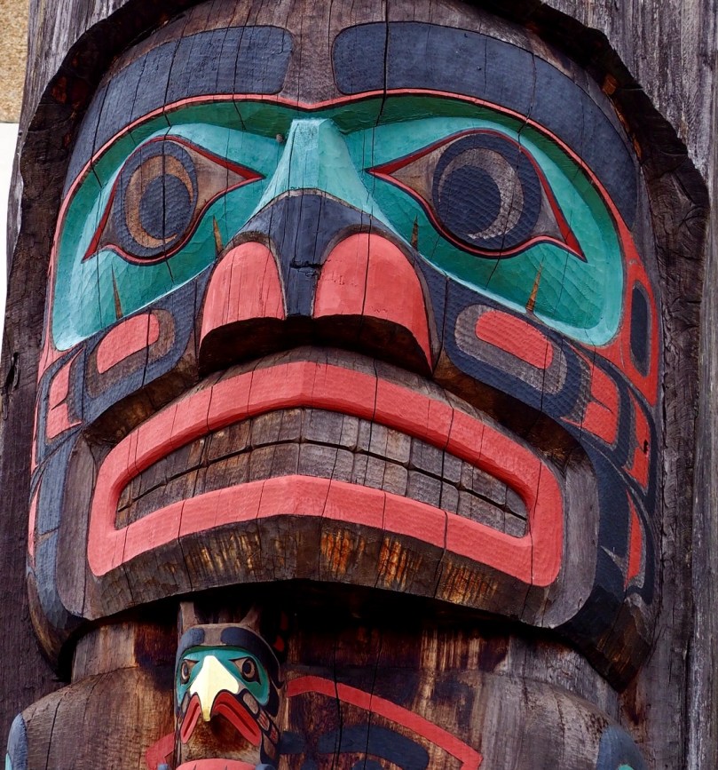 Er interessiert sich offensichtlich für uns und unsere Aufmerksamkeit, mit der wir die monumentalen Wahrzeichen der First Nations zu verstehen versuchen. Sehr freundlich lässt er uns unter anderem wissen, dass alle diese riesigen Totempfähle in den achtziger Jahren des 20. Jahrhunderts von Simon Charlie oder Hwunumetse‘, wie er als Angehöriger des Cowichan Tribes hieß, hergestellt wurden.