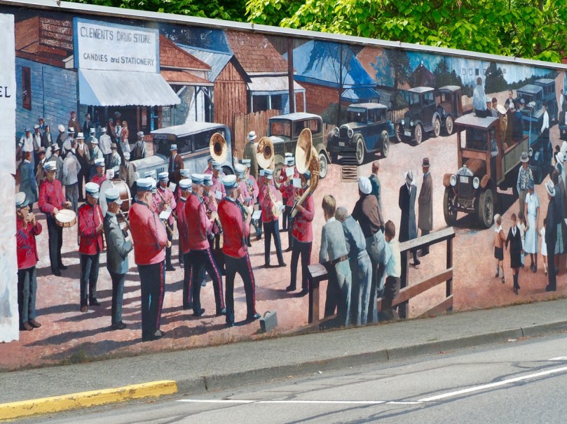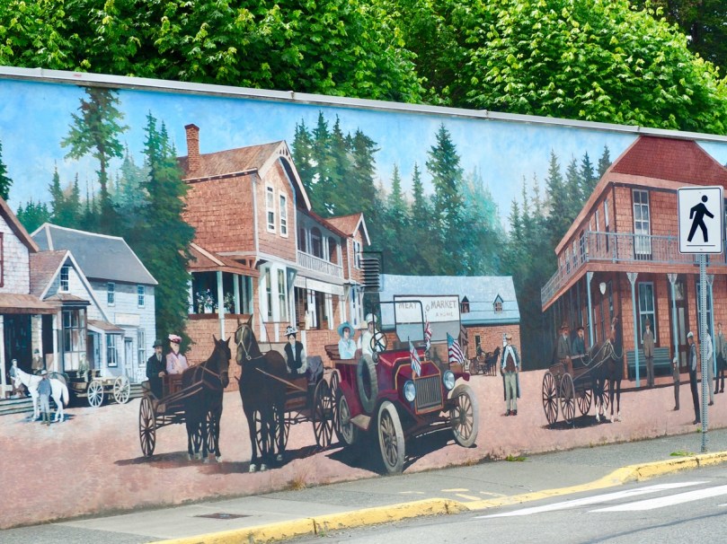 Nach weiteren nur 20 Kilometern biegen wir mal wieder vom Hwy 1, dieses Mal nach rechts ab und kommen in dieses kleine Nest wegen seiner besonderen Hauswandmalereien. Man kann diese Gemälde wahlweise kitschig oder informativ nennen, uns gefallen sie durchaus.