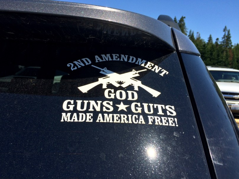 Da meint jemand tatsächlich, dass nur der 2. Zusatzartikel der Verfassung der Vereinigten Staaten (das uneingeschränkte Recht auf Waffenbesitz darf verfassungsgemäß nicht durch ein Gesetz geschmälert werden) die ansonsten bedrohte Freiheit garantiere…