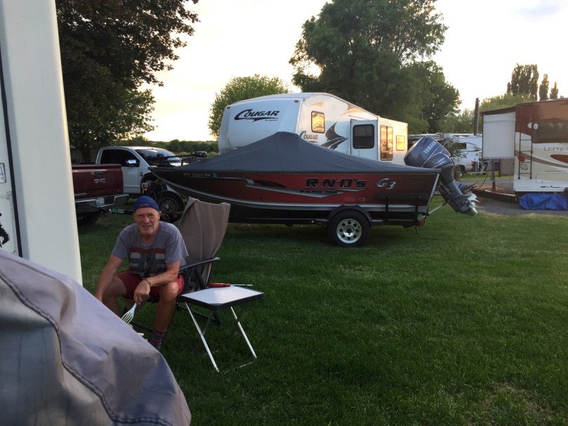 Wir werden beschenkt: der frisch aus dem nahegelegenen Banks Lake geangelte, für uns fertig filetierte Small Mouth Bass schmeckt uns vorzüglich und ist eine gern angenommene Köstlichkeit, für die es sich lohnt, mal wieder unsere Reise-und Lebensstory zum besten zu geben.