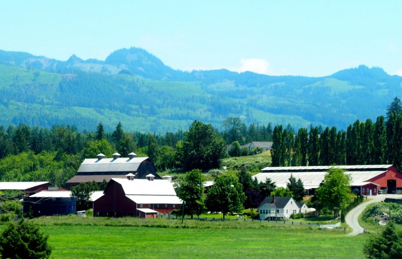 Skandinavisch anmutende Wirtschaftsgebäude der sich ins Tal schmiegenden Farmen zeigen uns, dass immer wieder alte europäische Baukultur nach Amerika mitgenommen wurde und uns das Gefühl, gar nicht so weit weg von zuhause zu sein vermittelt.