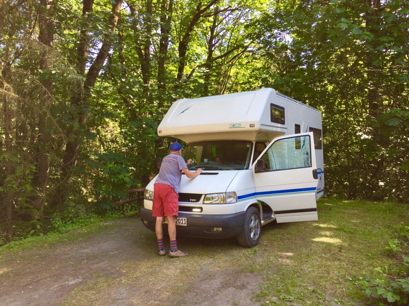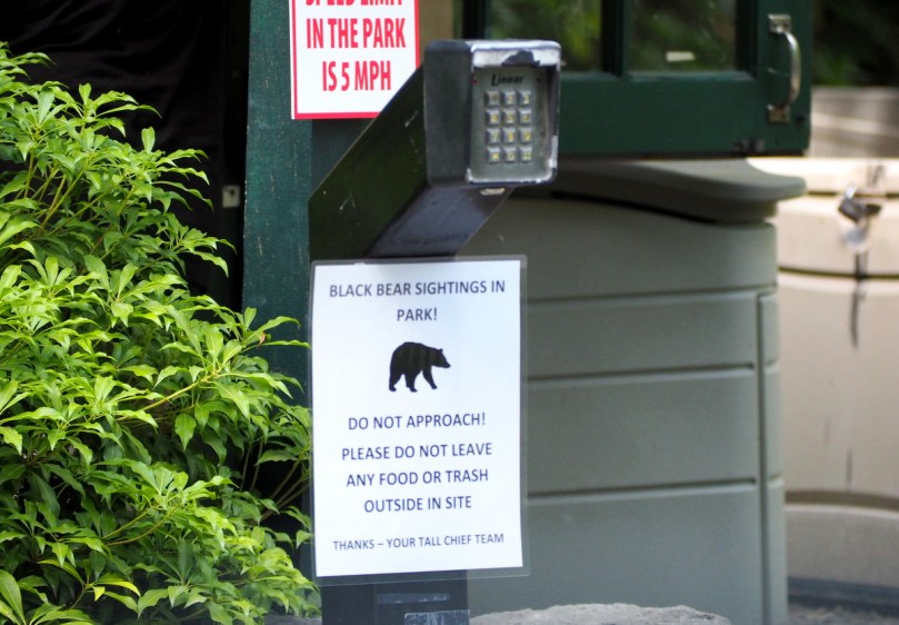 Wir haben alles richtig gemacht! Nach den letzten drei Stunden, ungefähr 190 Kilometern weiter südlich über den Hwy 202 landen wir mitten in der Einsamkeit eines riesigen Waldgebietes im Tall Chief RV Resort, was bedeutet, dass Menschen sich hierher zurückziehen können, um Freizeitangebote wie Schwimmen, Angeln, Kanufahren und selbstverständlich angenehmes Übernachten zu genießen. Wir werden herzlich aufgenommen, sollen uns allerdings vor dem hier gesichteten Schwarzbären in Acht nehmen. Für uns ist es inzwischen auf jedem Platz selbstverständlich, alle essbaren Dinge immer im Auto aufzubewahren.