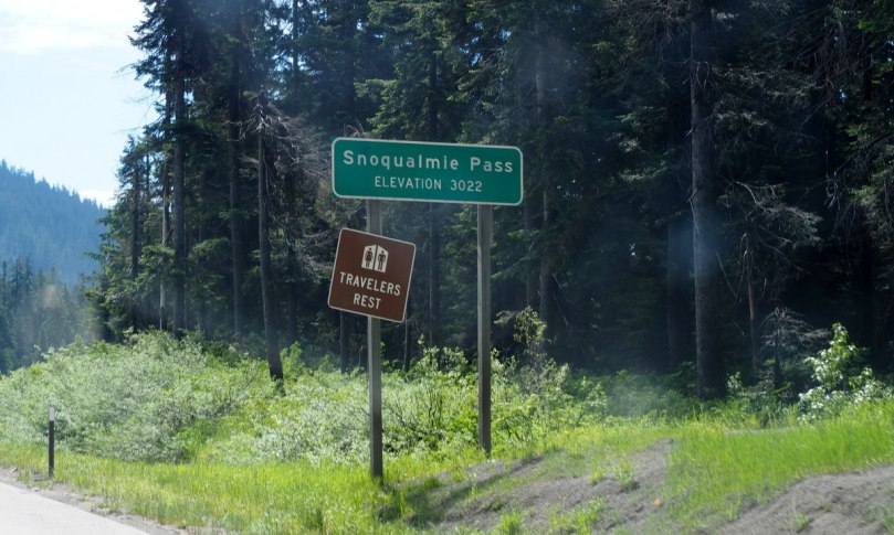 Es geht locker über den Hwy 202 und dann wegen fehlender Alternative über die I-90 bis auf gut 1000 m hoch über den Snoqualmie Pass 200 km Richtung Vantage, WA. Hier im äußersten Norden der USA ist er der flachste Pass über die Kaskaden (ganz sicher, weil Vero es herausgefunden hat). Wow, im Übrigen verläuft dieses Gebirge, für Europa unvorstellbar, von British Columbia CAN bis nach Nordkalifornien USA, über 1130 km Länge!
