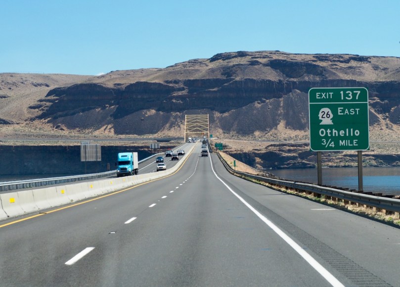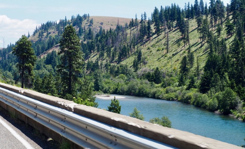 Die Kaskaden liegen hinter uns, hinter dieser Brücke drehen wir sofort auf Nordost und durchqueren ein nicht enden wollendes, riesiges, wasserfressendes Weizenanbaugebiet, dass uns die nächsten 150 Kilometer begleitet.