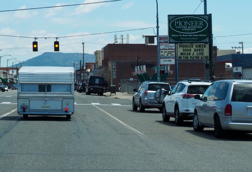 Denn viel mehr als, es ist zum Staunen, zwei Campingplätze, einen Supermarkt, wir wissen es nicht genau, aber bestimmt mehr als eine Kirche, eine Elemantary School und eine Tankstelle gibt es in einer „Stadt“ wie Wilbur wahrscheinlich nicht. Trotzdem geht niemand zu Fuß. Wenn wir die 500 Meter zum Supermarkt gehen, immer schön an den Straßenrändern entlang, Fußgängerwege?, glauben die Menschen hier Aliens zu sehen.