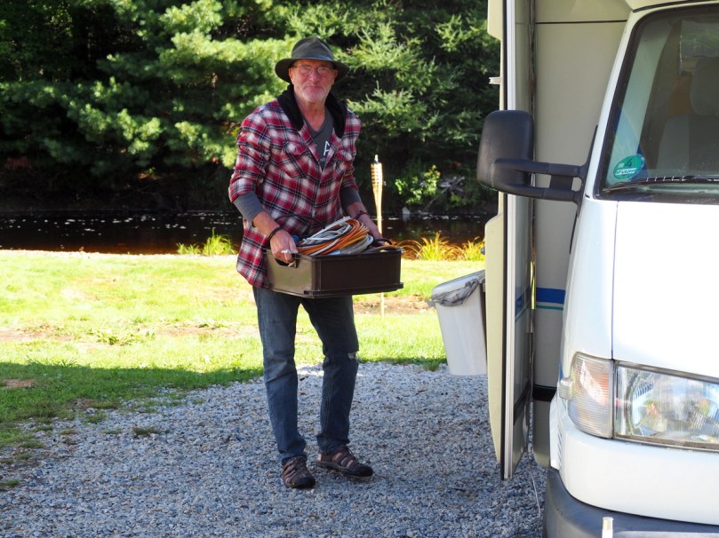 Auf dem Platz treffe ich Nelson, einen Dauercamper aus Yarmouth NB, der sich wie ich tierisch darüber freut, im Gespräch mit mir seine deutschen Sprachkenntnisse aufbessern zu können. Er ist wirklich gut! Seine Zeit in Deutschland als Soldat/Interpreter in Soest und Lahr im Schwarzwald hat nachhaltige Eindrücke hinterlassen.