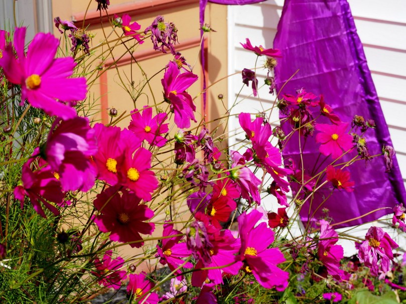 Holzschnitt bestreut, weich gepolstert führt er uns an diesen opulenten, hortensienähnlichen Sträuchern vorbei…