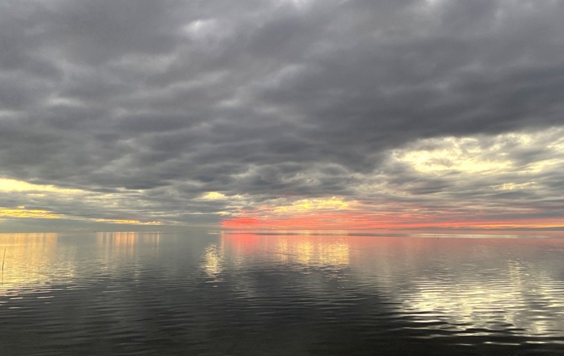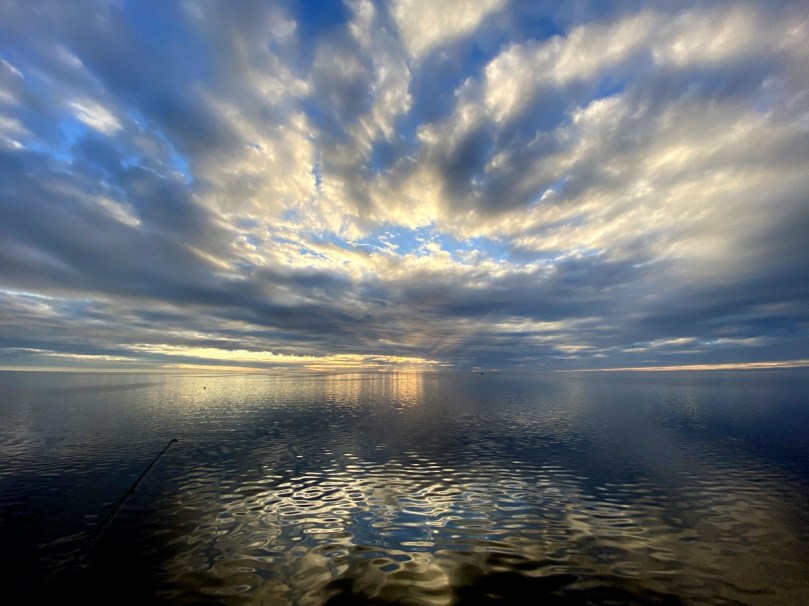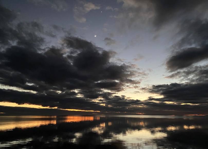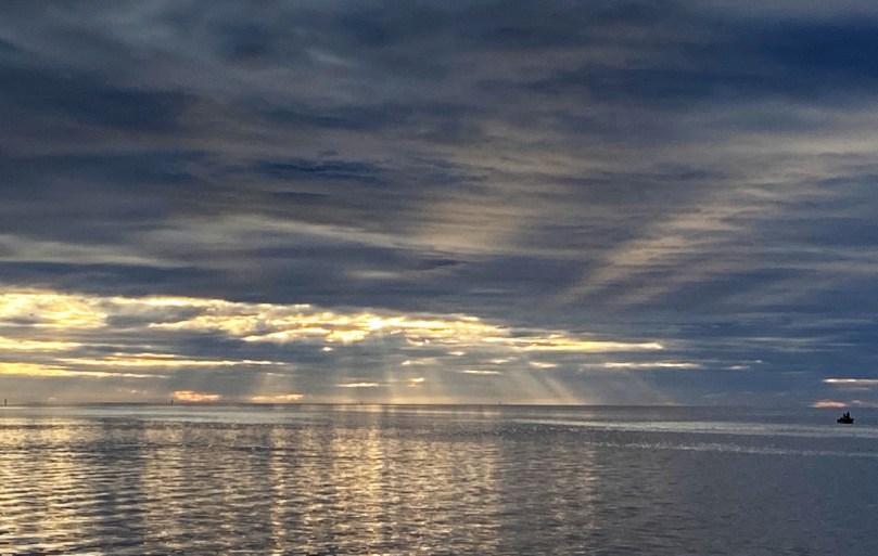 kehrt die Sonne scheinbar noch einmal zurück. In der Realität sind es „nur“ ihre Lichtreflexe in den unterschiedlichen Wolken- und Wasserspiegeln.