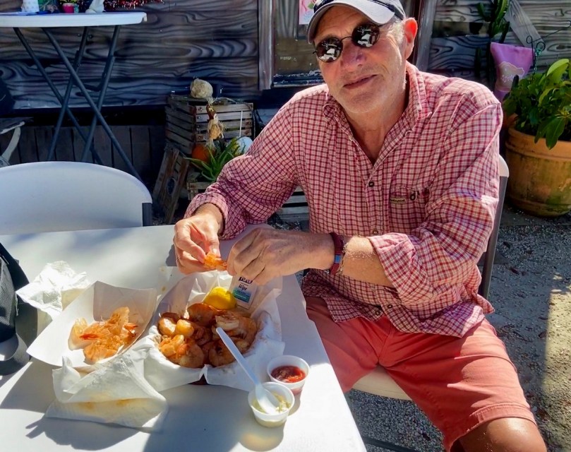 Unserem Lieblings-Shrimps-Imbiss mit den frisch gekochten, Old Bay gewürzten Krabben (hier heißen alle Sorten von Krabben oder Garnelen Shrimps), die wir noch selbst pulen müssen.