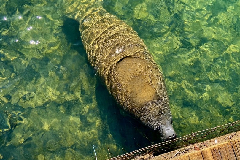 Die Manatees, eine in Floridas häufig vorkommende Seekuhart, ziehen sich im Winter aus den kalten Gewässern an der Küste in die warmen inländischen Quellen vieler Floridaflüsse zurück. So bekommen auch wir sie zu Gesicht.