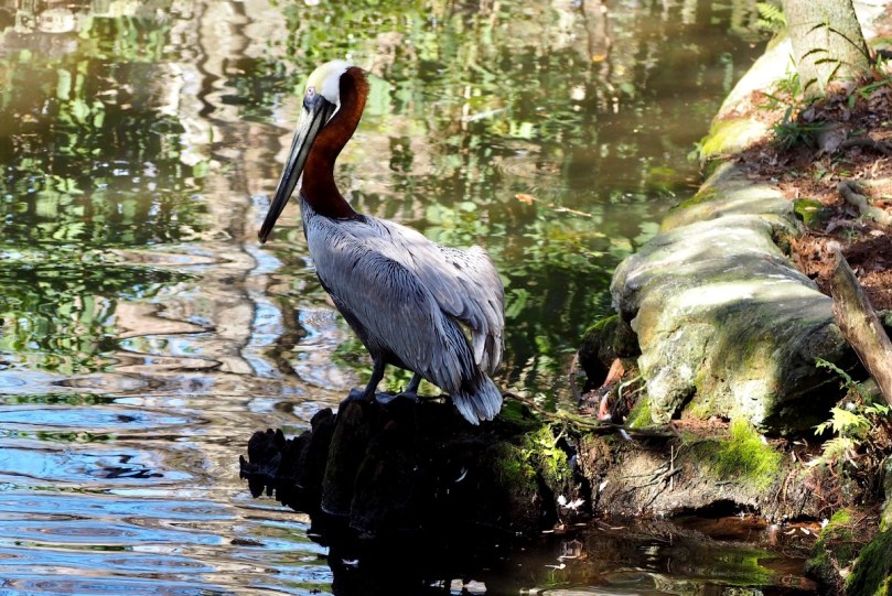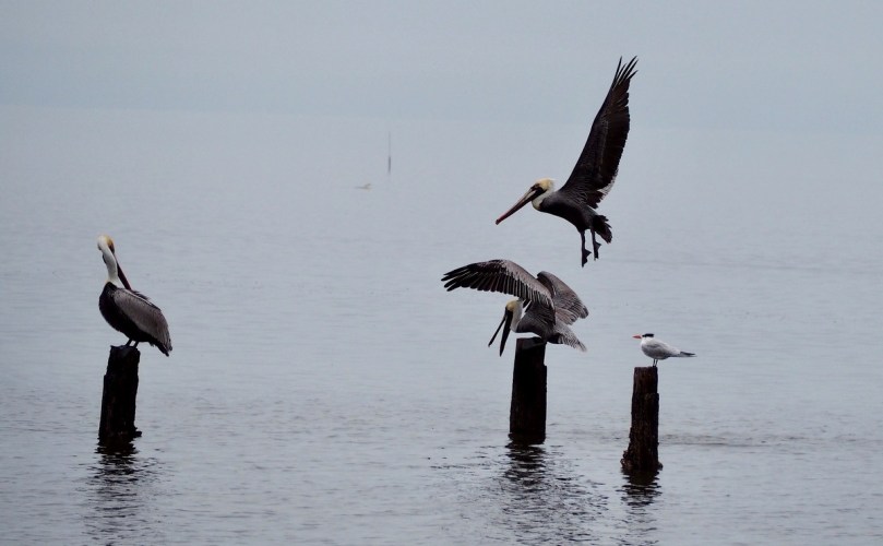 …und gleich nebenan, der für Florida so typische Pelikan. Ein auf Futtervorrat bedachter Großvogel mit schwimmhäutigen Füßen.